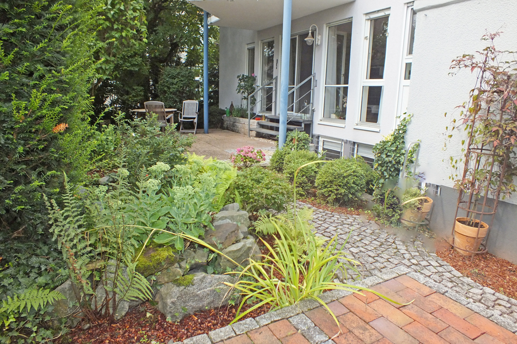 - Sehr große Terrasse auf einem liebevoll angelegtem Grundstück, üppig und grün eingewachsen