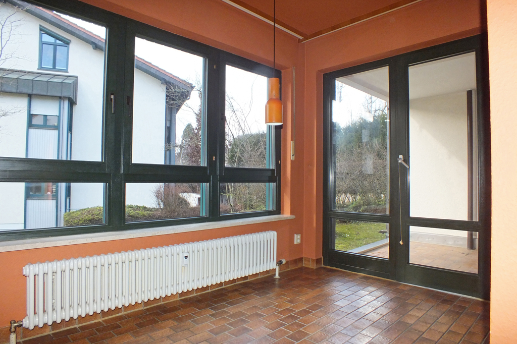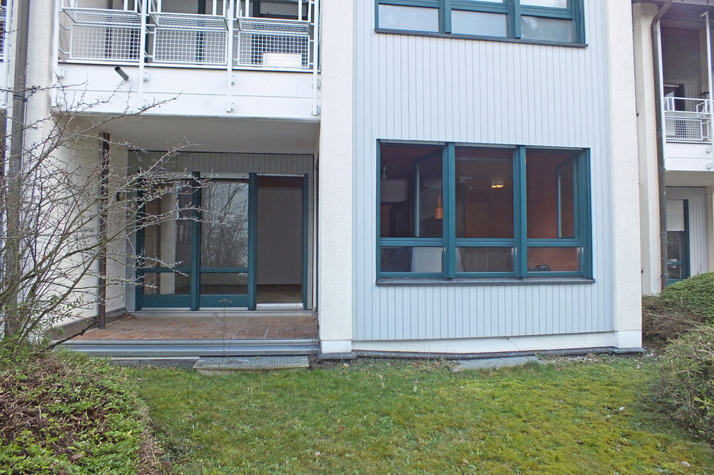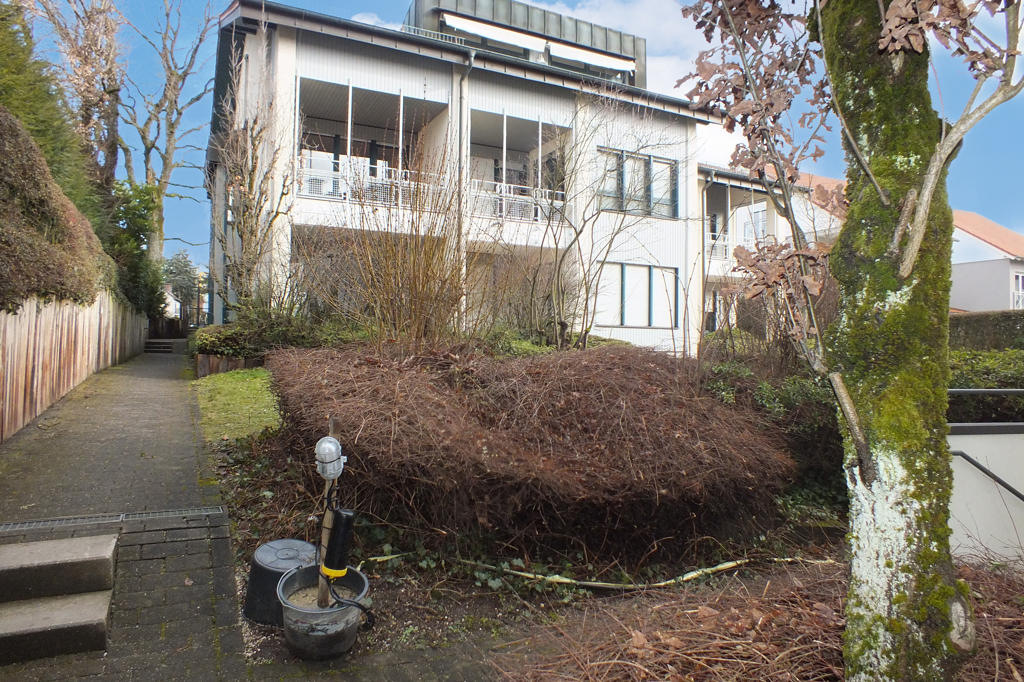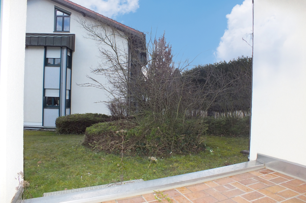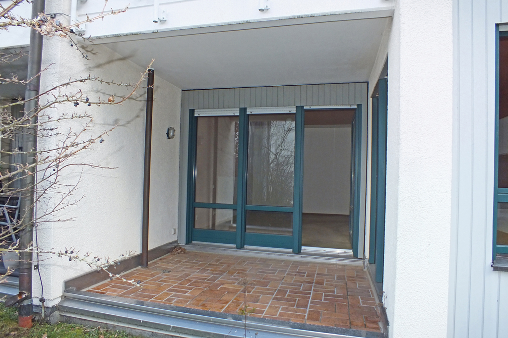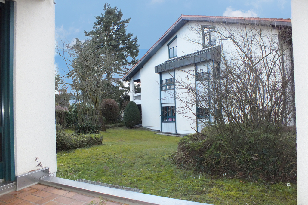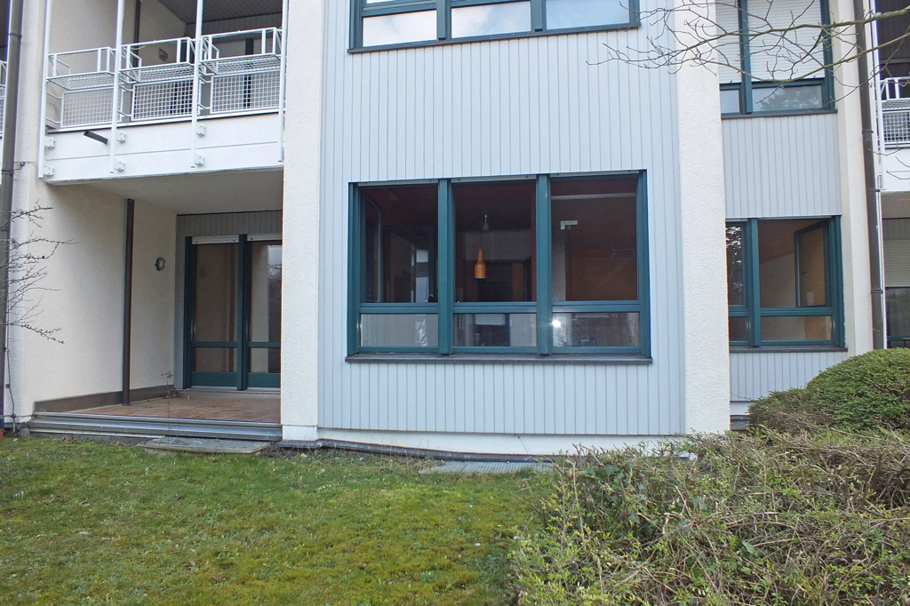 Großzügig geschnittene 2,5-Zimmer-Wohnung mit Wohnküche und Südwest-Terrasse Richtung großes Gartengrundstück mit Blick ins Grüne.