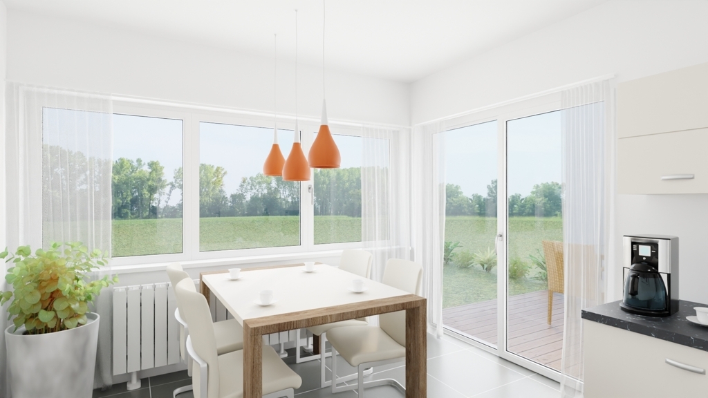 - Helle Wohnküche mit Platz für Essecke, Zugang zur Terrasse