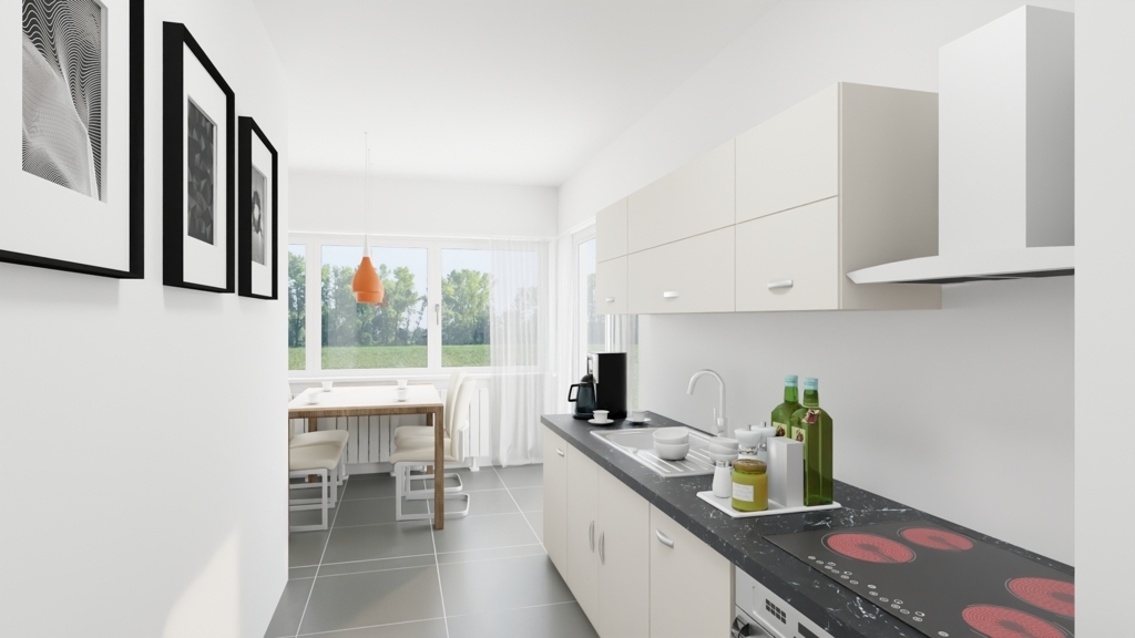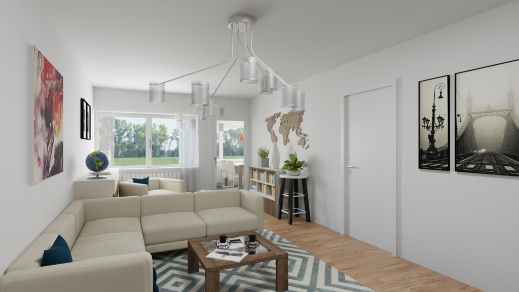 Da die Wohnung langjährig vermietet war und vollständig modernisierungsbedürftig ist, zeigen wir auch Illustrationen, wie es nach der Modernisierung aussehen könnte und Einrichtungsbeispiele.