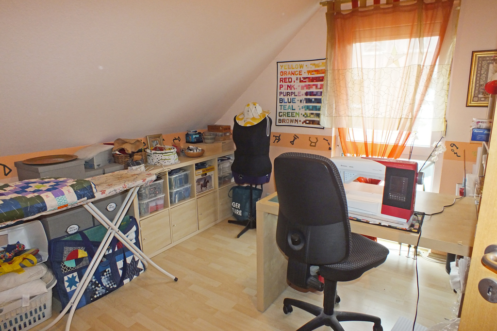 - Raum mit ca. 20 m² (nette) Fläche geeignet als Arbeits-/Gäste- oder Schlafzimmer, sehr hell durch bodentiefe Fensterfläche und zwei Dachflächenfenstern