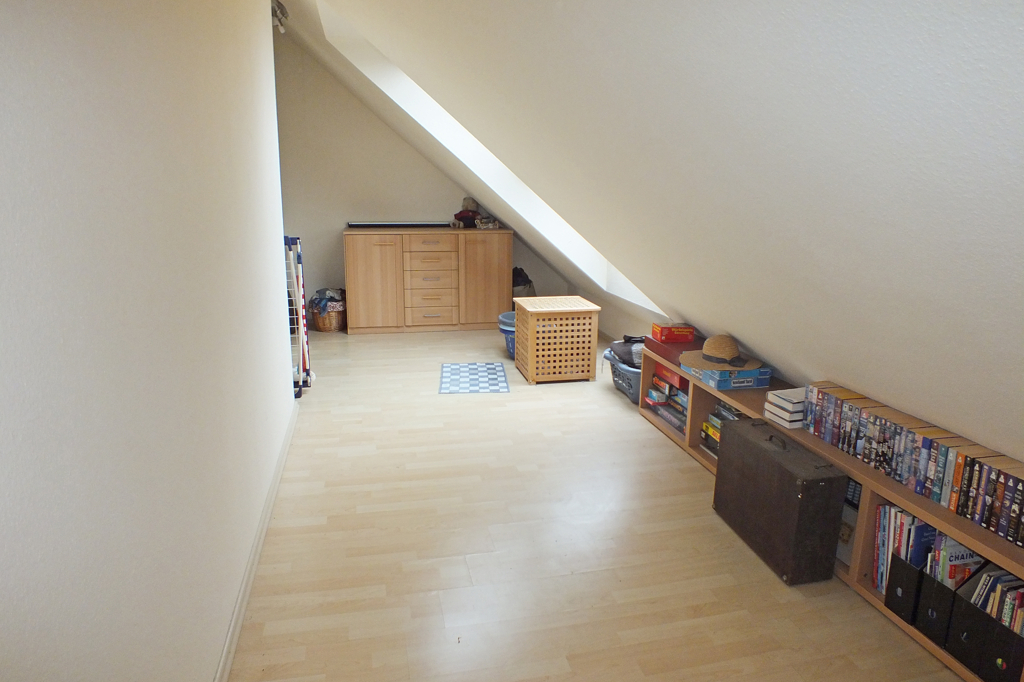 Der ausgebaute Spitzboden wurde nur als Nutzfläche ausgewiesen, ist aber vollwertig wohnlich ausgebaut, beheizt und mit großen Fensterflächen versehen.