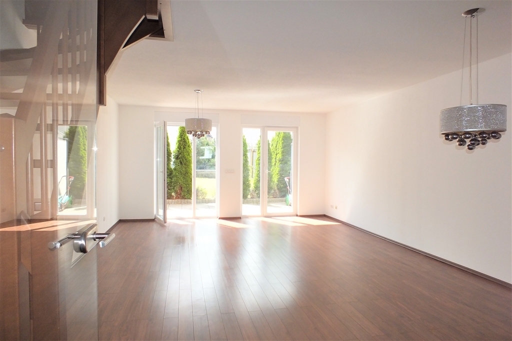 In diesem “Haus-im-Haus” in Frankfurt Preungesheim, dem angesagten “Frankfurter Bogen”. Ihr schickes neues Heim hat alles, was ein Haus haben sollte: eigener Eingang, eigener Garten mit Sonnen-Terrasse, großzügige Raumaufteilung auf 2 Wohn-Ebenen. Hier ist Ihr eigenes Haus jedoch erschwinglich: denn es ist formell gesehen eine Maisonette-Wohnung (EG + 1. OG) im Konzept “Haus- im- Haus”, quasi wie ein Reihenhaus gestaltet.