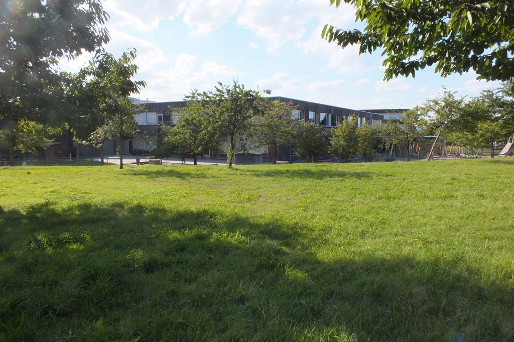 Dazu ein großer Park und sowieso viel Grün integriert und drumherum. Angrenzend sogar ein großer Sportpark.