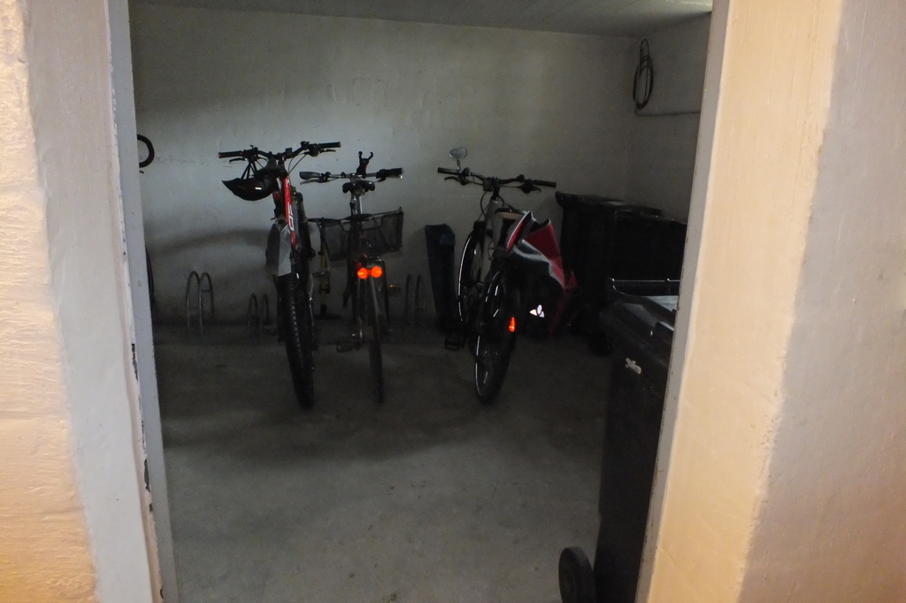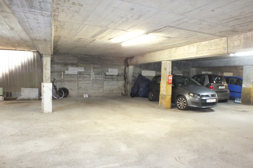 Zur Wohnung gehören 2 TG-Stellplätze zu je € 50 und ein privater Kellerraum mit Schränken/Regalen