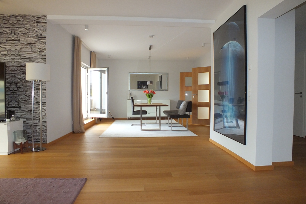 Die Wohnung soll voll ausgestattet vermietet werden, optional und in Abstimmung kann die Wohnung auch geräumt vermietet werden.- Echtholz-Eichenparkettboden und hochwertige Fliesen