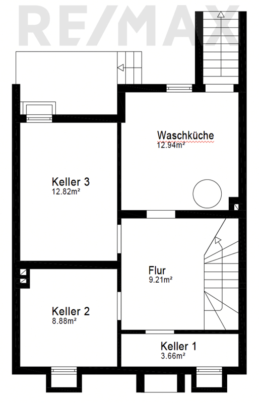 Das Kellergeschoss bietet einen Heizungsraum, einen Waschraum mit direktem Zugang über eine Außentreppe zum Garten, einen Hobbyraum bzw. Partykeller, sowie einen weiteren Lagerraum.