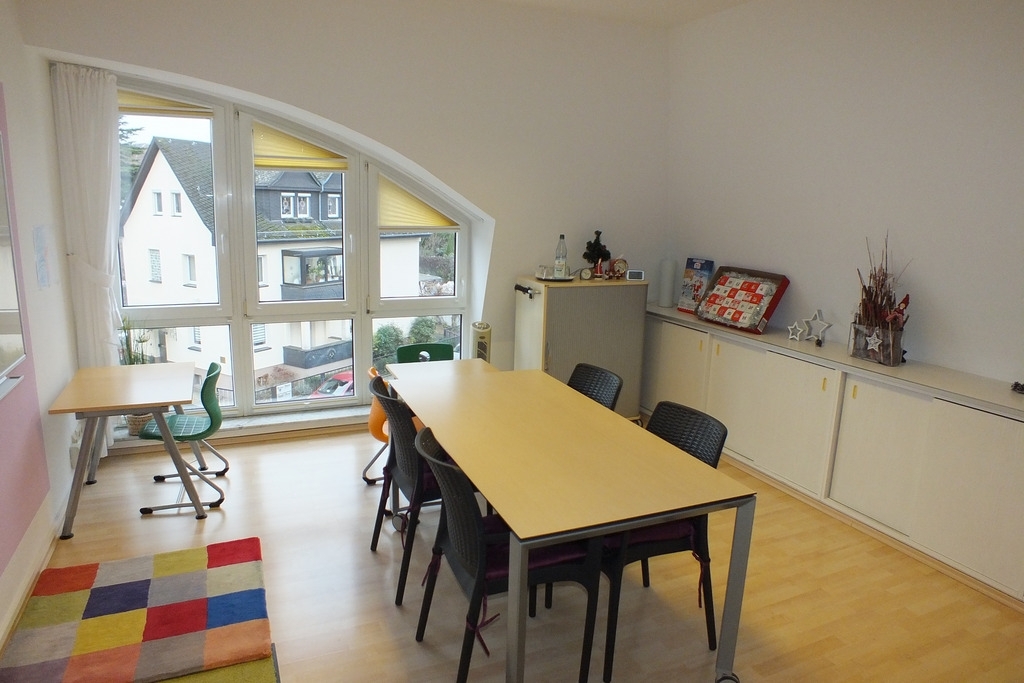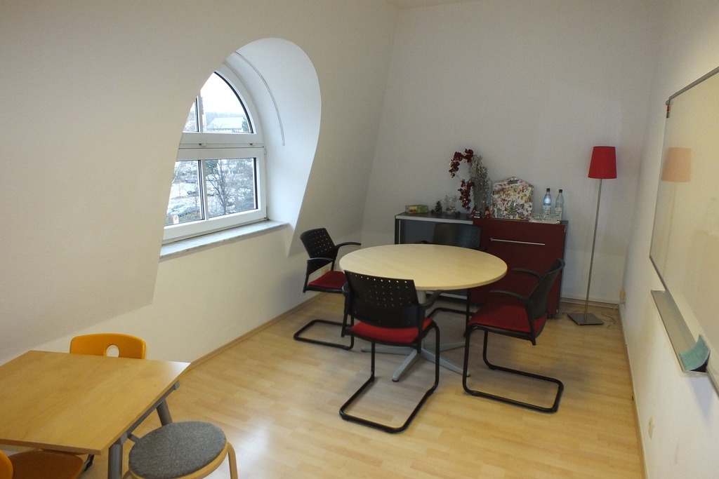 Aufteilung: 5 verschieden große Räume, eine gemütliche Teeküche/Personalraum mit bereits ausgestatteter kleiner Einbauküche und ein WC mit Vorraum. Sehr dezente Dachschrägen und runde Gaubenfenster verleihen den Räumen ein sehr schönes Ambiente.