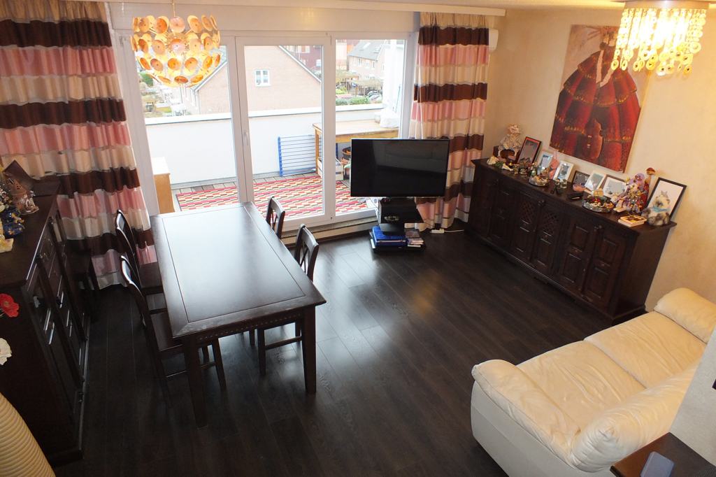 Diese absolut familientaugliche Wohnung hat auf der unteren Ebene drei großzügige Zimmer mit ca. 90 m² Wohnfläche, 2 Bäder und on top erhalten Sie auf der oberen Ebene noch zwei schön ausgebaute Zimmer mit ca. 28 m² Nutzfläche (netto) im Sondernutzungsrecht dazu.