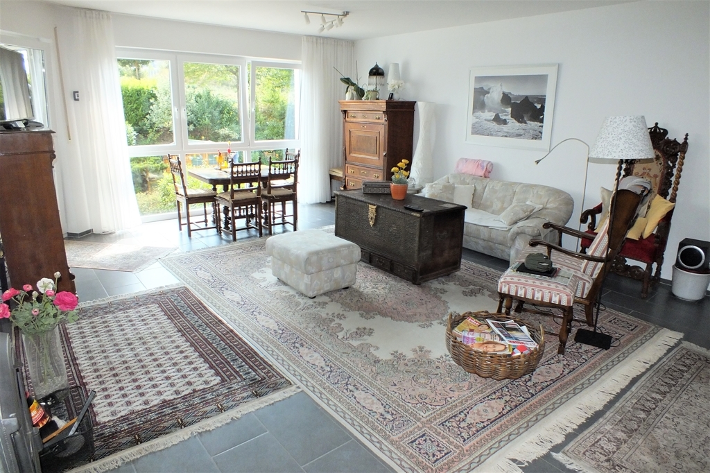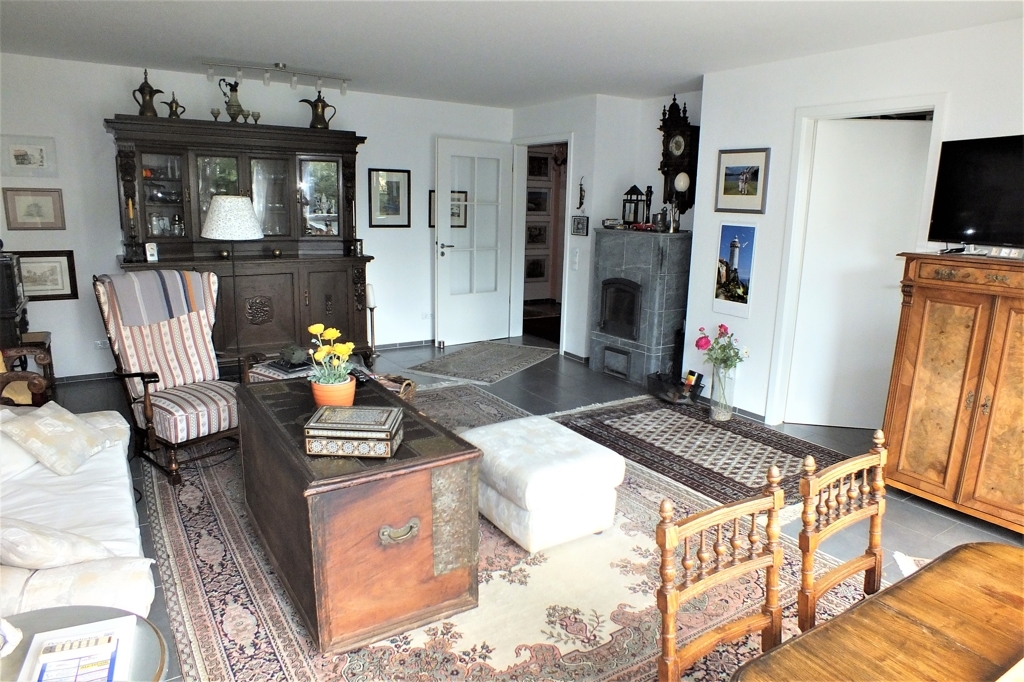 - Wohn-Essbereich: sehr großzügig mit ca. 35 m² (!); sehr hell durch die große, bodentiefe Fensterfläche; für gemütliche Winterabende ein moderner Kaminofen aus Speckstein, der Wärme besonders lange speichern kann