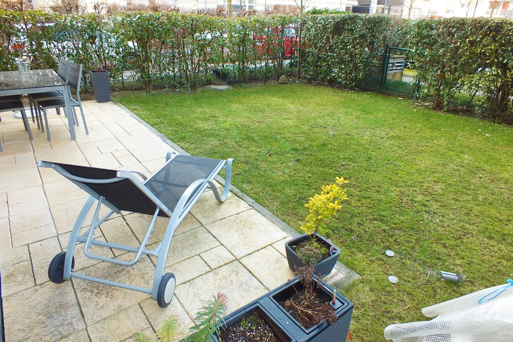 - Ihr hübscher, gar nicht mal kleiner Garten von mehr als 100 m². Perfekt für den Nachwuchs zum Spielen, für die Garten-Grillparty, oder einfach zum Relaxen auf der Sonnenliege: Es hat schon ein paar angenehme Vorteile, einen eigenen Garten an der Wohnung zu haben. Und: es ist Ihrer, aber Sie müssen ihn nicht extra bezahlen! Beim Haus müssten Sie das.