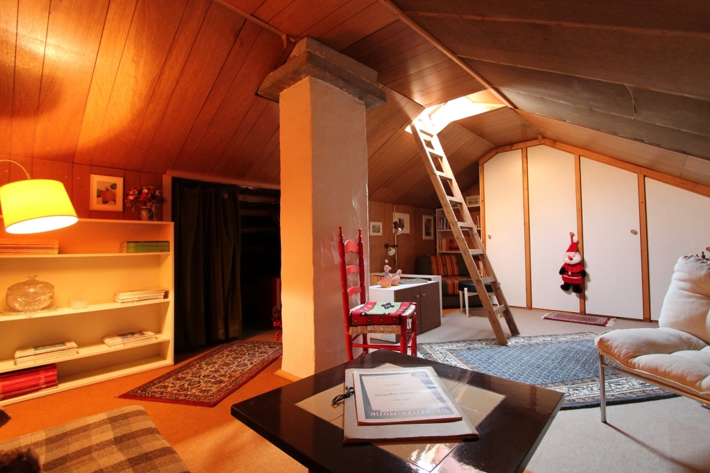 Das Dachgeschoss mit seinem Spitzboden wurde bereits ausgebaut. Hier bietet sich Ihnen darüber hinaus noch sehr großes, weiteres Potential: Ausbaufähig als tolles Dachstudio, z.B. mit großen Gauben und zusätzlichen Giebelfenstern können Sie hier zusätzliche Wohn-Nutzfläche generieren. Zurzeit gelangen Sie über eine Auszieh-Treppe ins DG. Die bereits jetzige Wohn-/Nutzfläche des ausgebauten Spitzbodens wurde noch nicht in der Flächenberechnung berücksichtigt und versteht sich zusätzlich!