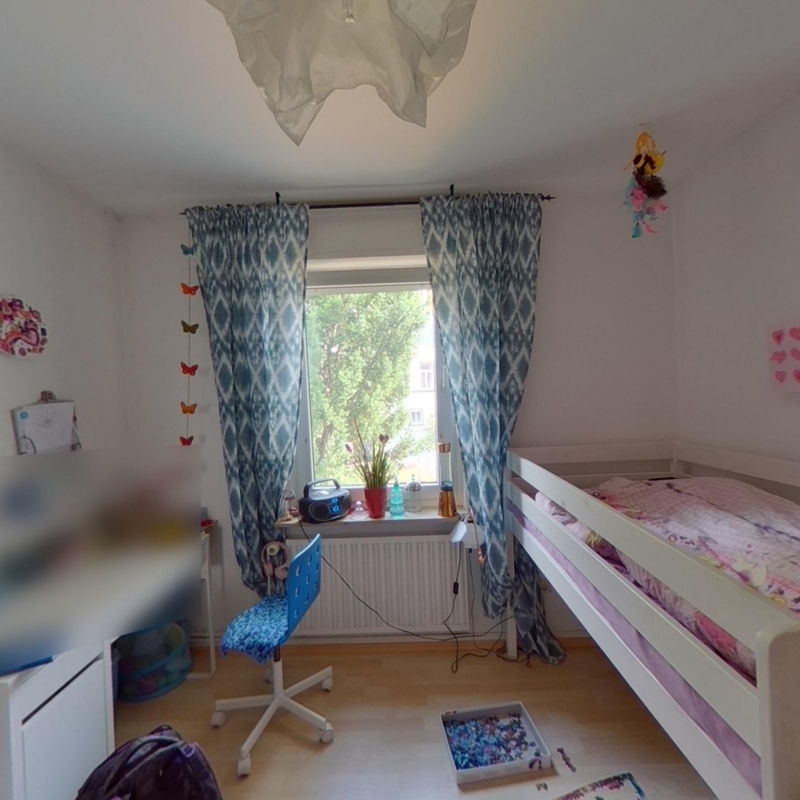 Wohn- und Schlafzimmer, beide sehr ähnlich geschnitten und schön hell mit 2 Fenstern. Das dritte Zimmer kann als Kinder-, Gäste- oder Arbeitszimmer genutzt werden. Kein Balkon!