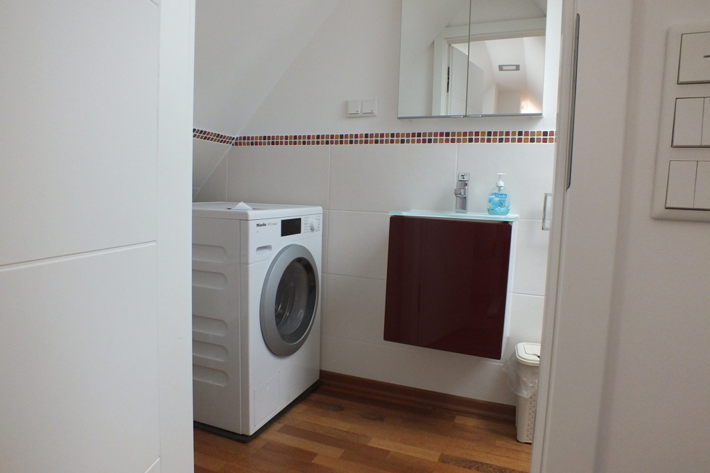 Spitzboden auch klimatisiert. Dazu ein separates Gäste-WC mit Anschluss für eine Waschmaschine.