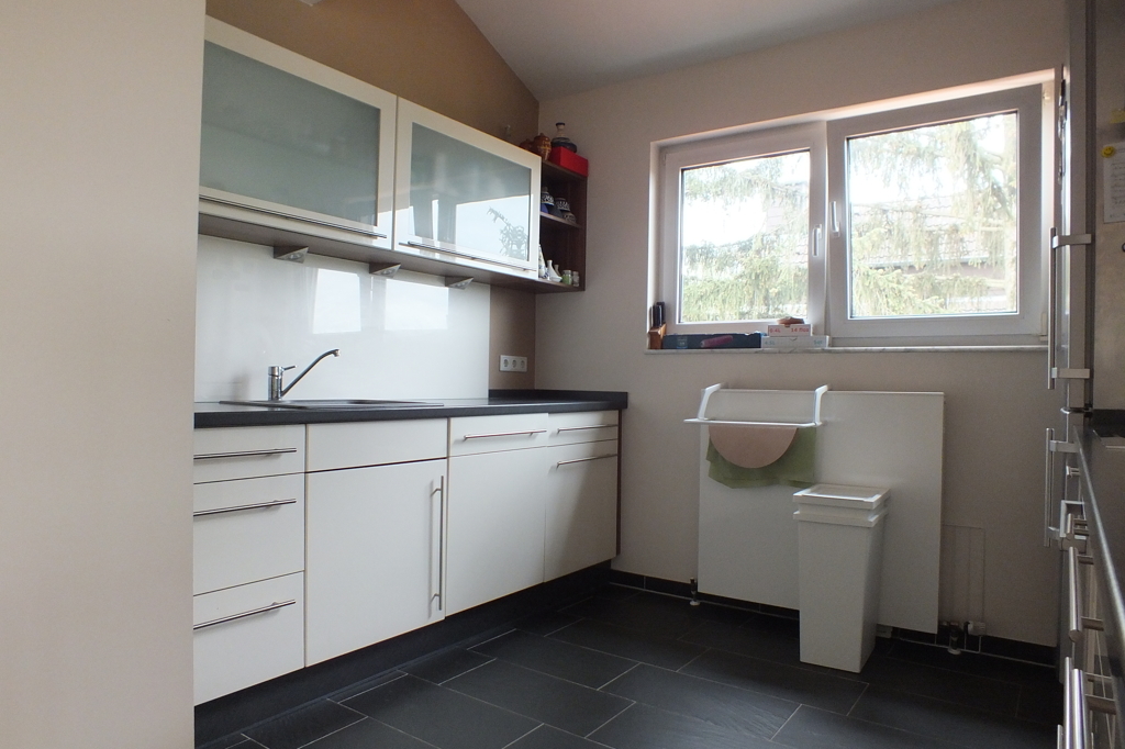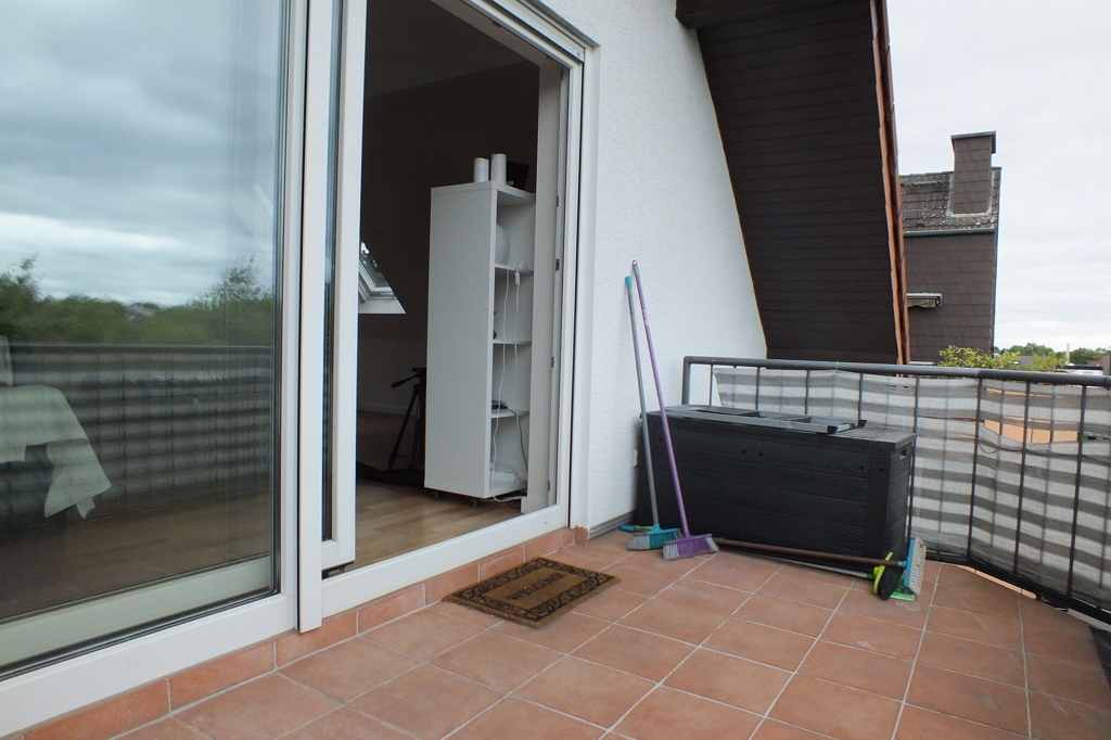 Die Wohnung ist sehr hell durch große Fensterflächen insbesondere im Wohn-Essbereich mit Licht von 2 Seiten. Alle Fensterflächen verfügen entweder über elektrische Rollläden (die normalen Fenster) oder über elektrische Verdunkelungsrollos von außen (alle Dachflächenfenster).