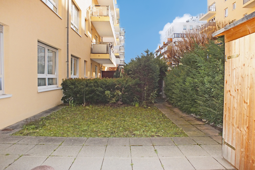 Die Wohnung liegt im 1. OG, dem Geschoss, wo die Gärten Richtung ruhiger Innenlage des Komplexes als Sondernutzungsrecht zugeordnet wurden.