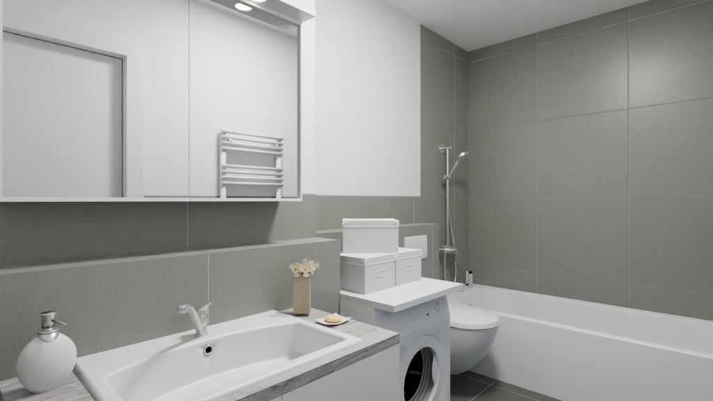 - Ein Bad mit Wanne und Waschmaschinenanschluss und ein Gäste-WC