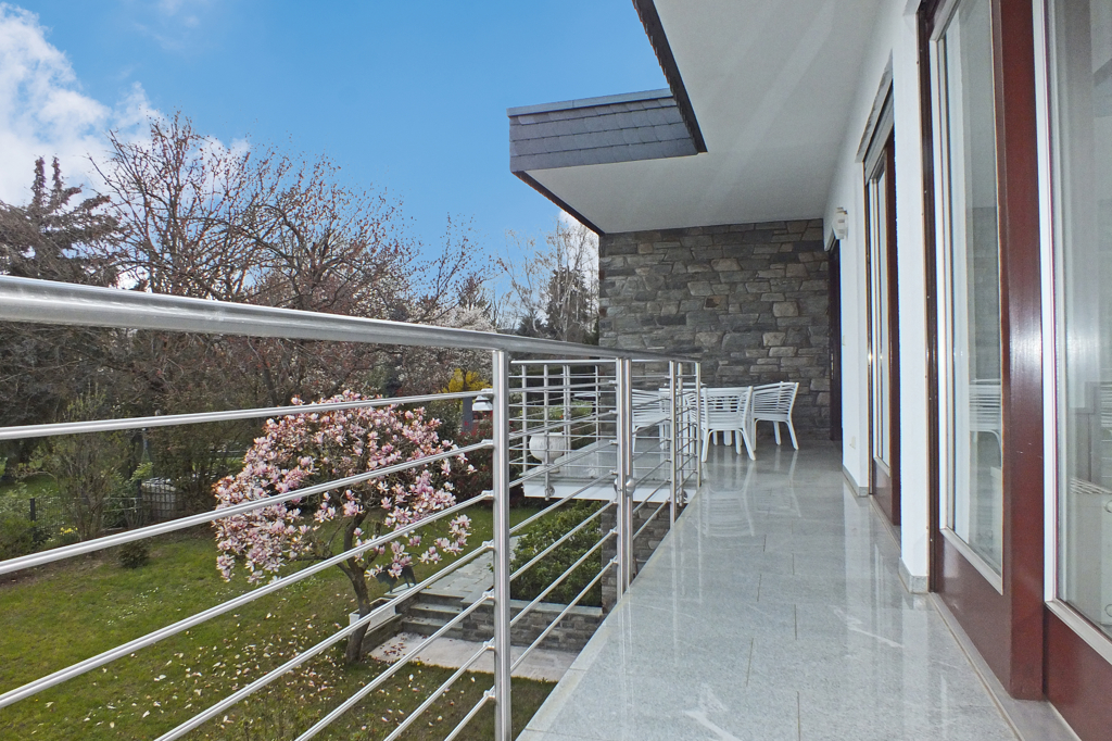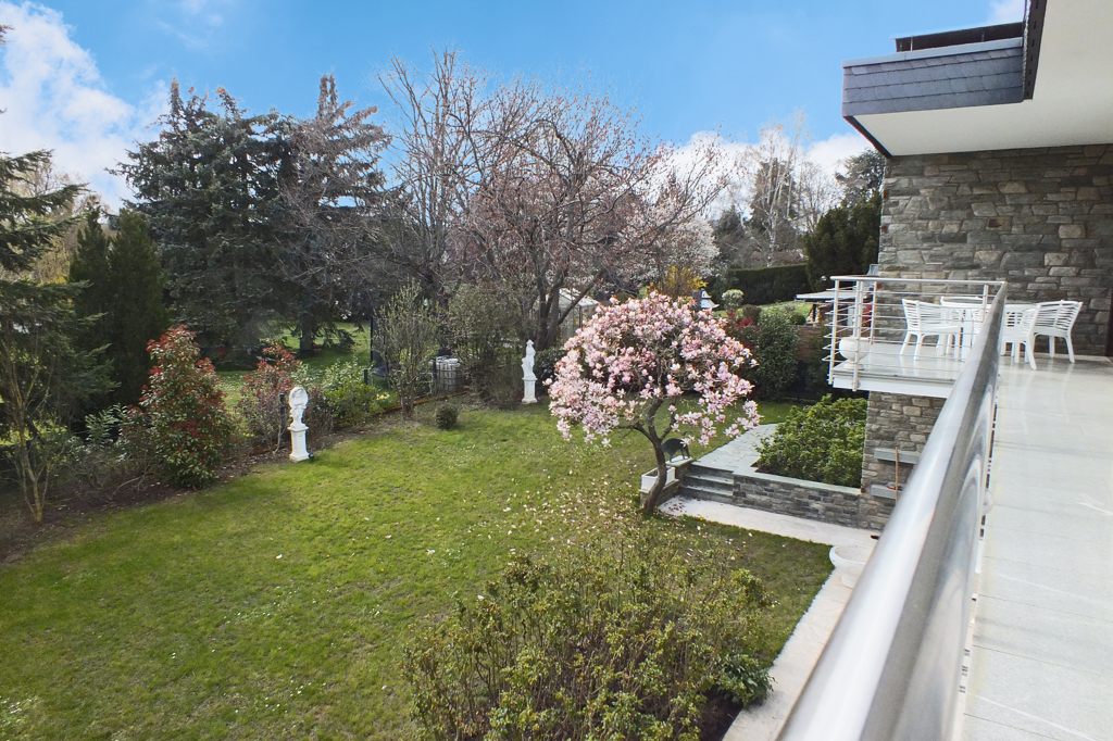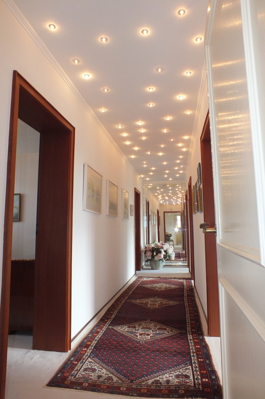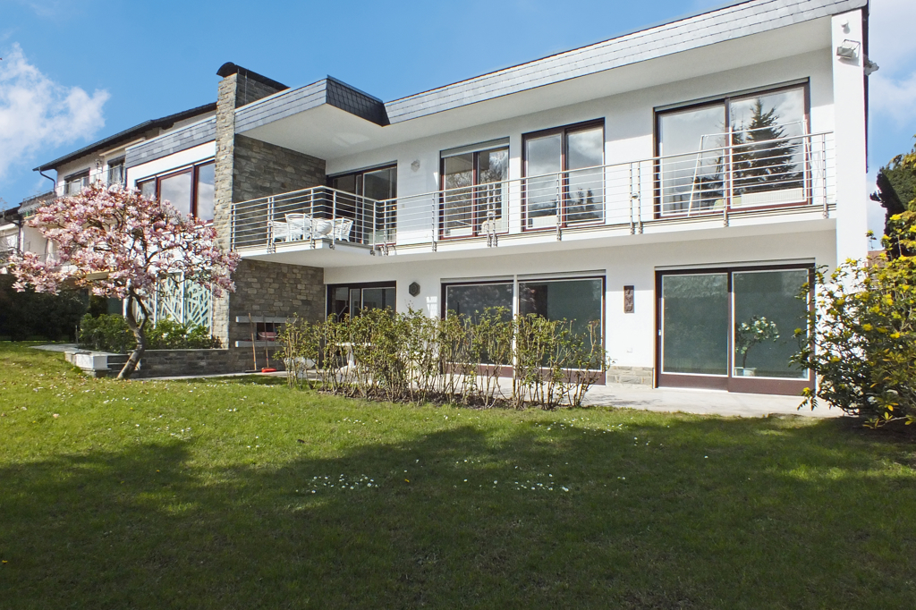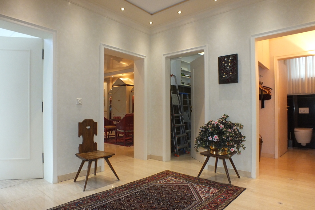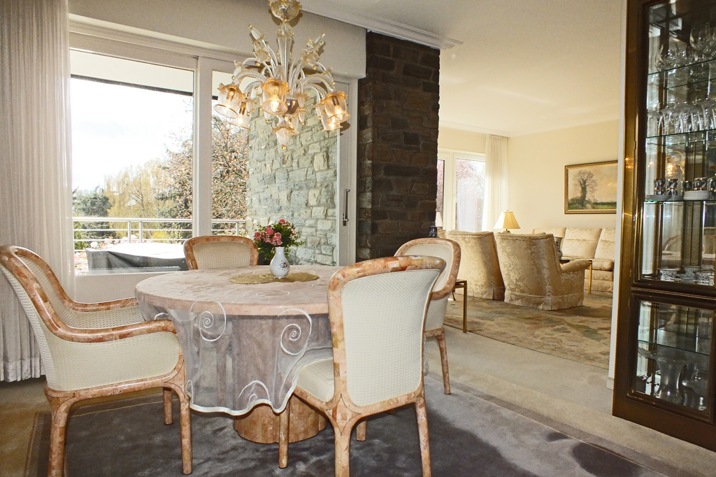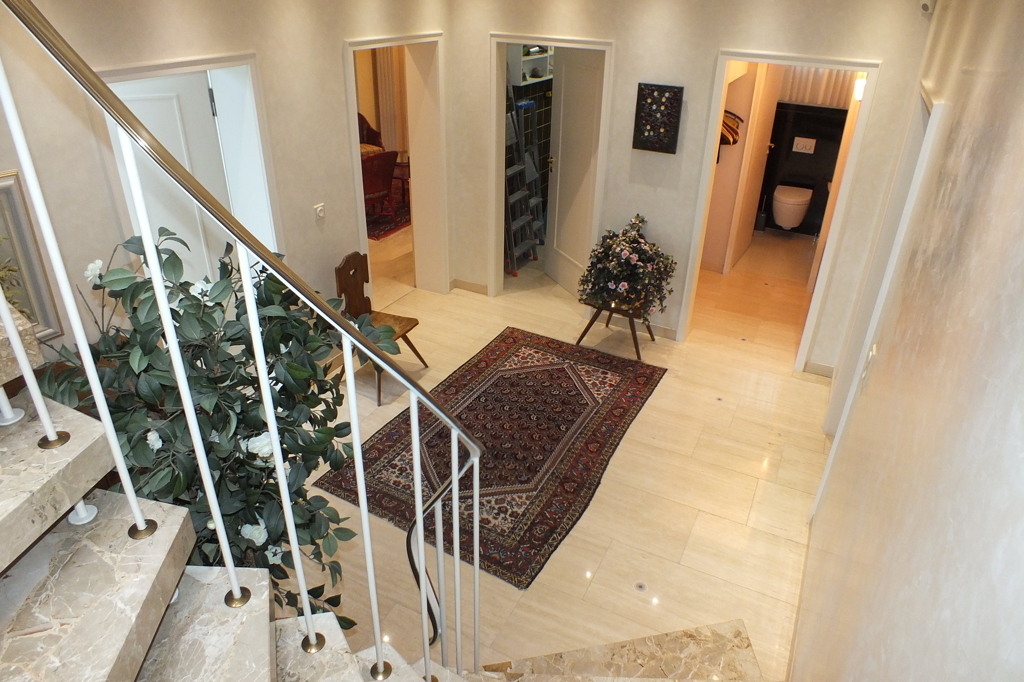 Auf zwei Geschossen, Erdgeschoss und Gartengeschoss befinden sich repräsentativ und großzügig ausgestattete Wohn- und Gästebereiche, ein exquisiter Wellnessbereich mit Schwimmbad, Sauna und Solarium, 4 Schlafzimmer, 2 Bäder, 2 Gäste-WC’s und viele praktische Nebenräume.