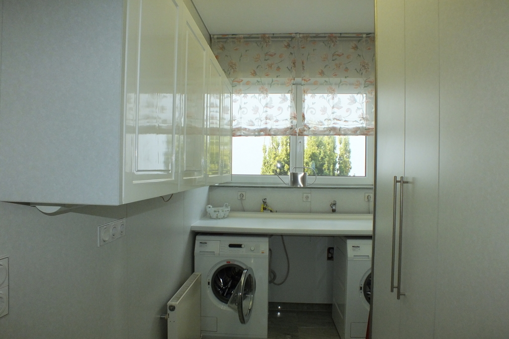 - Hauswirtschaftsraum mit Einbauschränken, Waschmaschine und Trockner