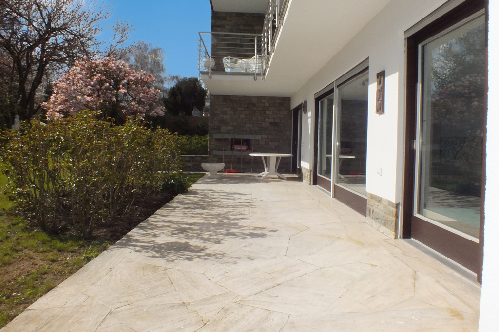 - Große Terrasse (ca. 20m²) mit schönen Naturstein-Fliesen