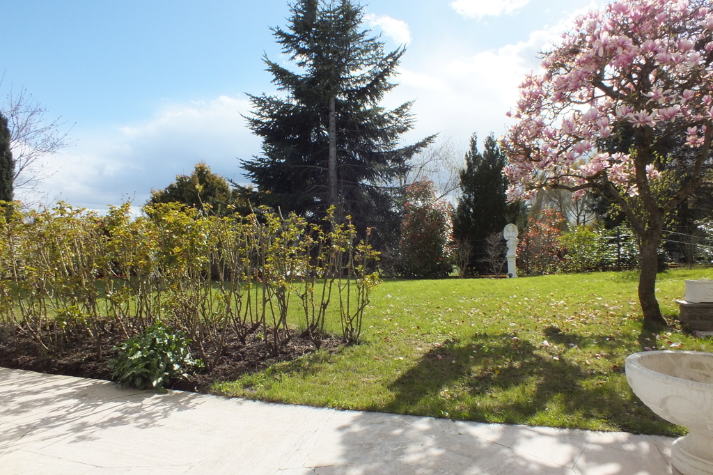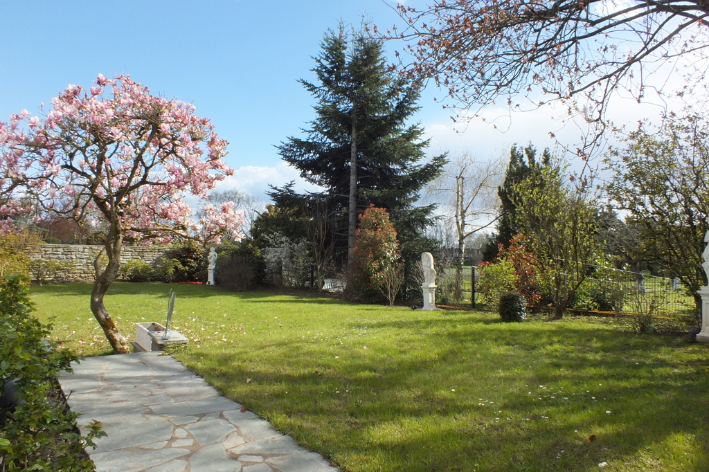 - Traumgarten sehr schön und liebevoll angelegt mit üppiger Bepflanzung rundum und mit einem weitem Blick ins Grüne. Auf einer Seite Gartenzugang zur Garage, auf der anderen Seite Zugang zur Straße, mit einem Tor versehen.