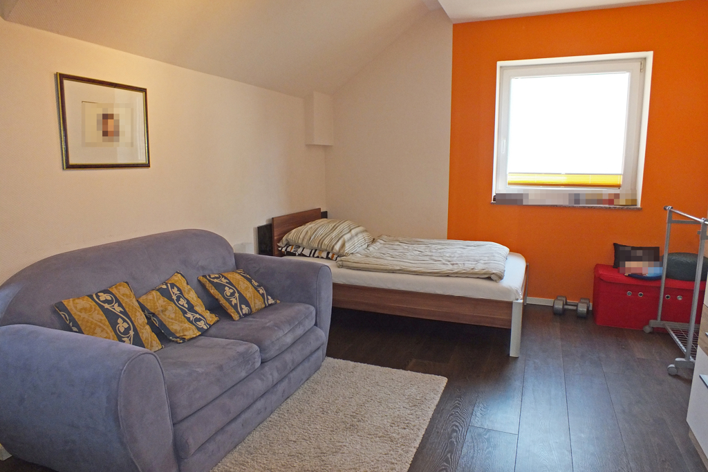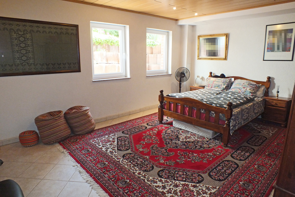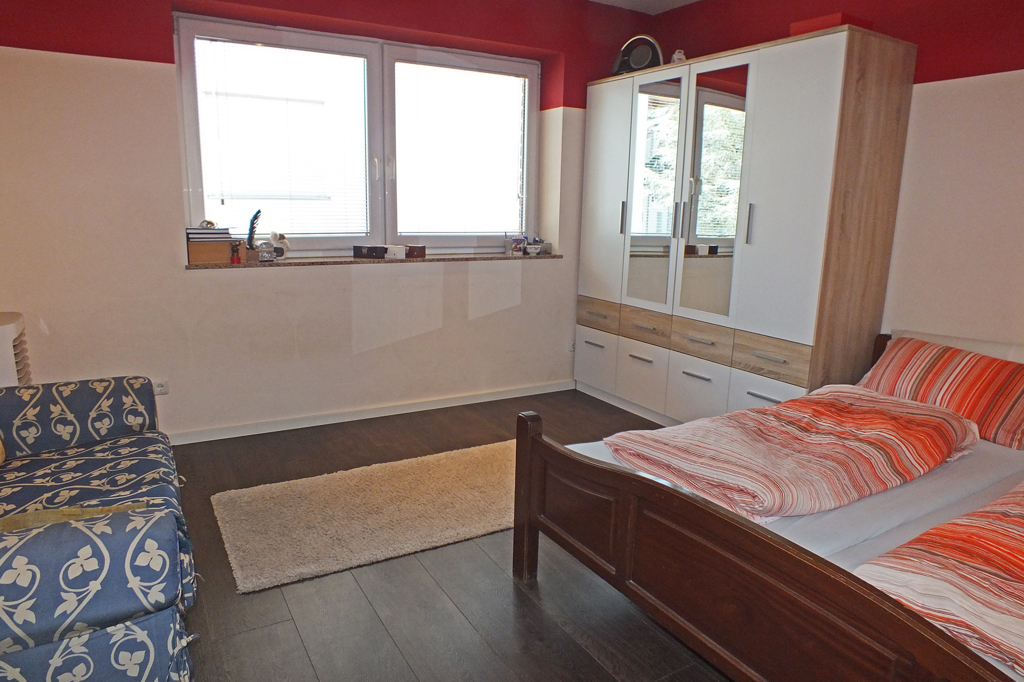 - Wohnlich ausgebautes Schlafzimmer oder Gästezimmer (ca. 22m²) mit zwei großen Fenstern