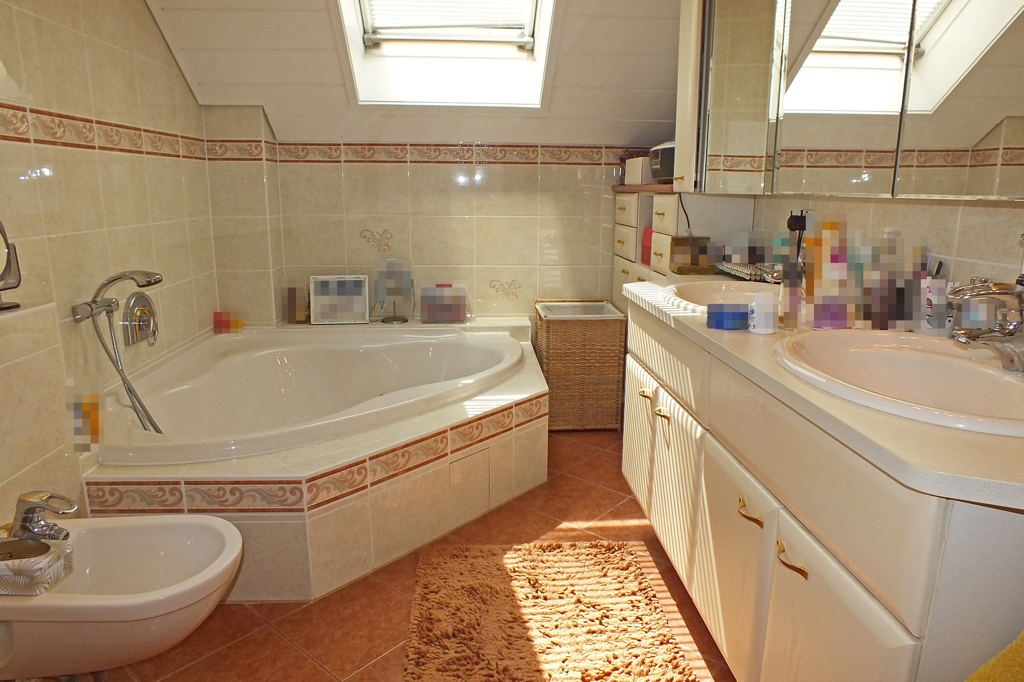 - Tageslicht-Elternbad en Suite mit Eckbadewanne, Dusche, Doppelwaschbecken, WC, Bidet und EInbauschränken