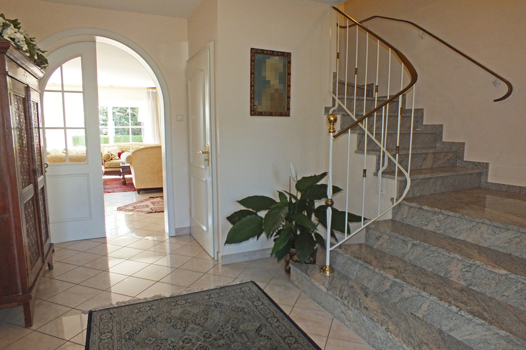 - Repräsentativer Dielenbereich mit Platz für Garderobe, Tageslicht-Gäste-WC und Marmortreppe nach oben